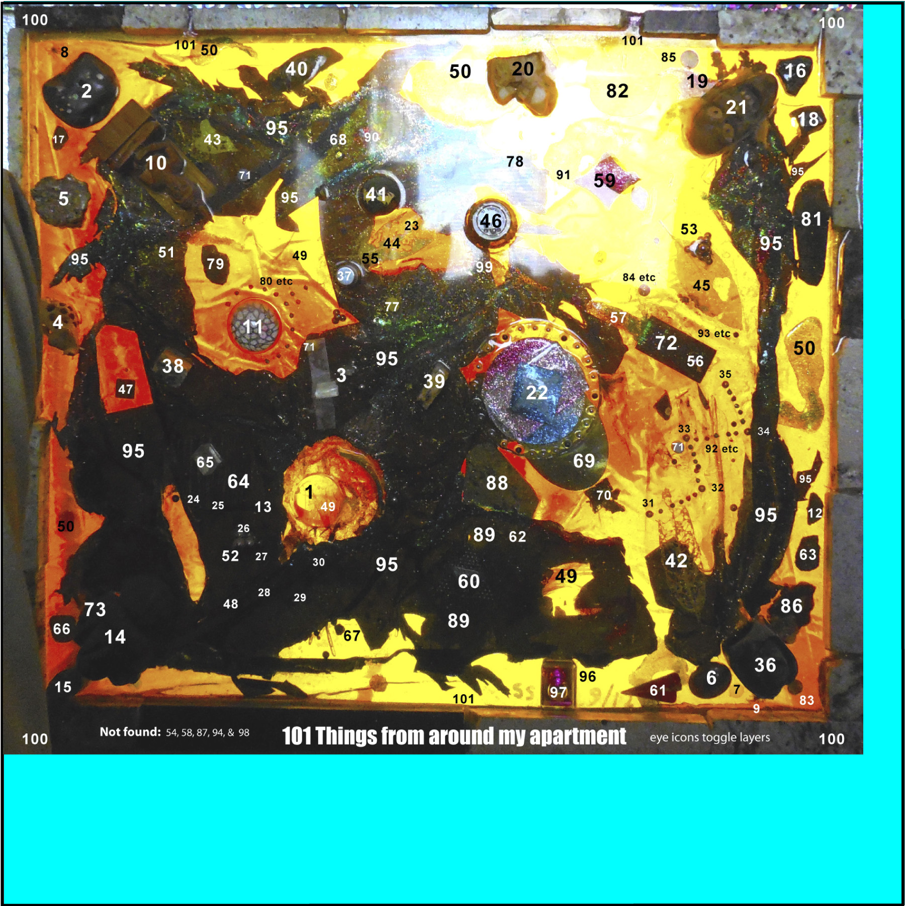 | 101 Things From Around My Apartment epoxy sculpture | |