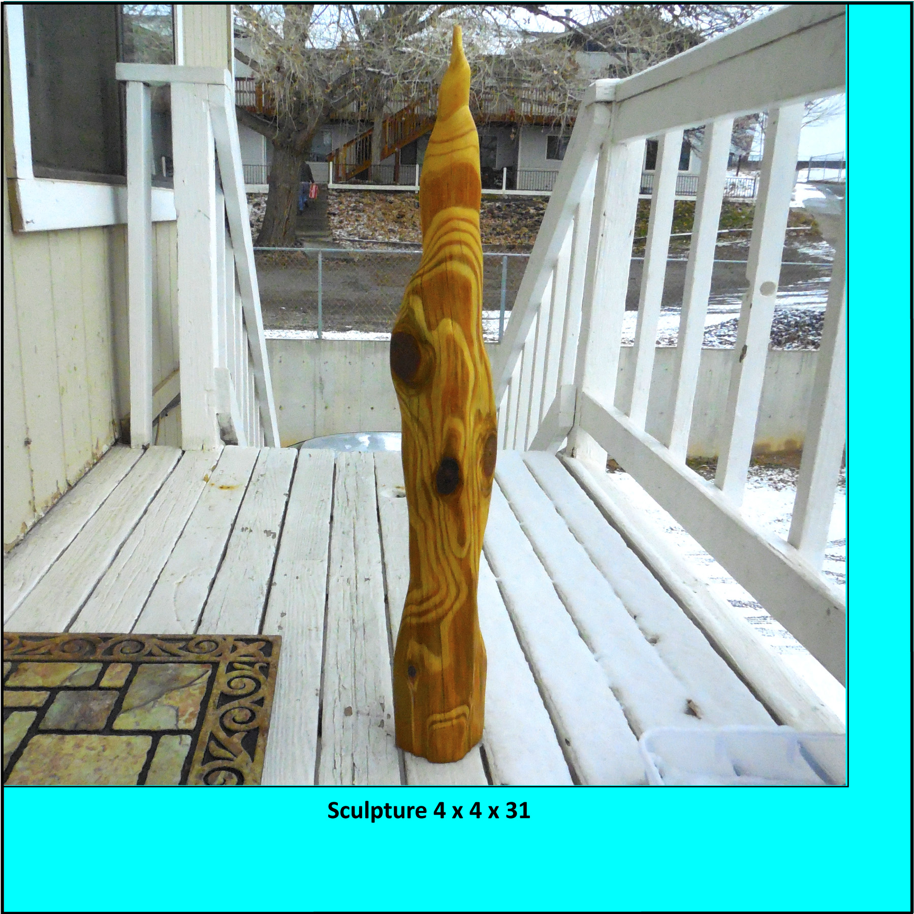 August 2018, 4x4x31, treated white pine carving